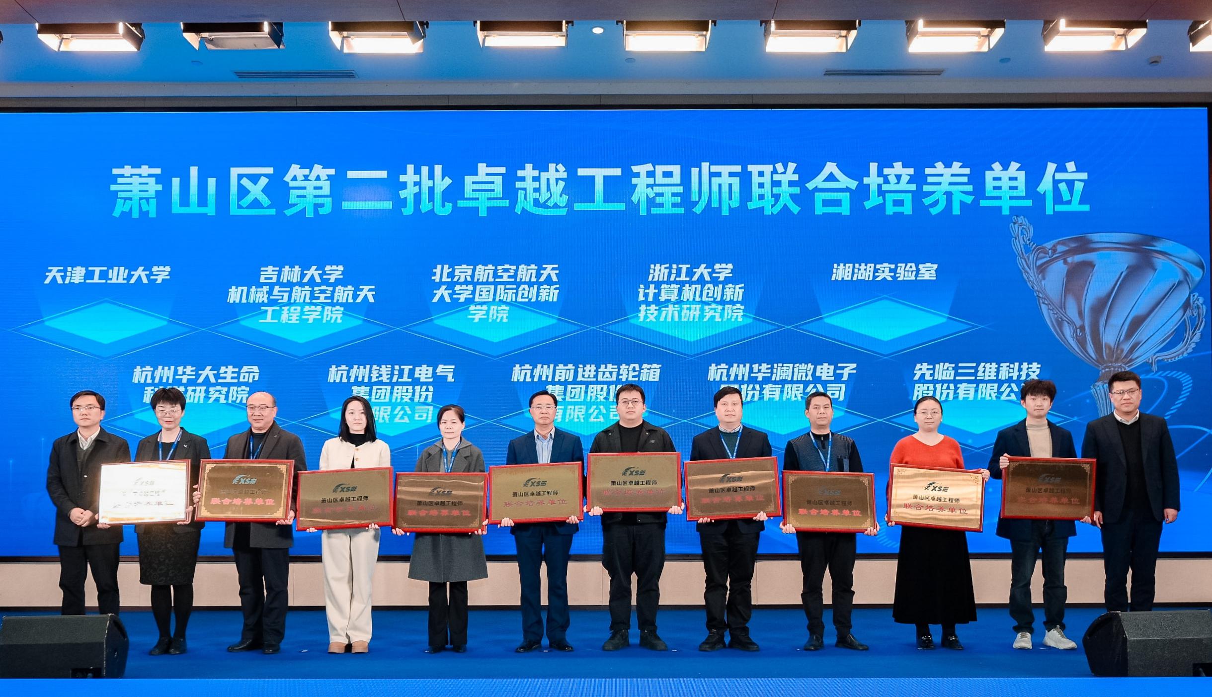 2025 年 12 月 26 日,萧山区第二届产才融合高质量发展大会召开,钱江电气成功入选萧山区第二批卓越工程师联合培养单位,总裁助理曹锟出席大会并上台接受牌匾。这为企业深化产教融合、培育工程技术人才,加强人才梯队建设搭建了良好的平台。